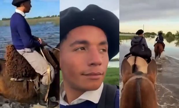 En el Día del Trabajador Rural, dos peones debieron dejar el establecimiento donde trabajaban, en una zona inundada de Bacacay, por las fuertes inundaciones; su salida a caballo, con las pocas pertenencias que pudieron rescatar, se volvió viral en redes
