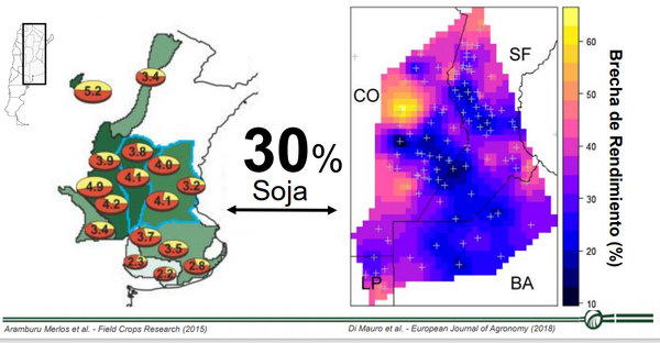 Los estudios realizados por Di Mauro y su equipo que la brecha entre lo que podría rendir la soja y lo que se logra es del 30%. Algo que se podría achicar si se optimizan las prácticas agronómicas.