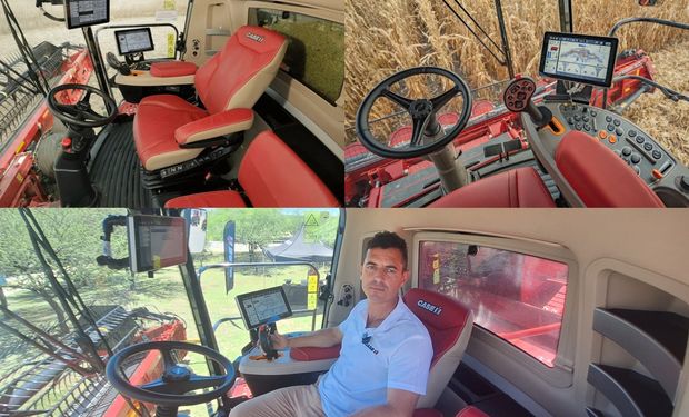 La cabina de las nuevas cosechadoras en Argentina, con masajes, dos pantallas última generación y hasta heladera: "Es la misma que se usa en Europa y Estados Unidos"