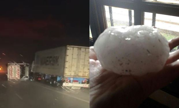 Fuertes vientos y granizo en Córdoba y Santa Fe: el temporal volcó más de ocho camiones en la ruta