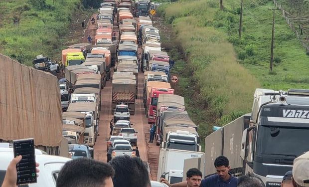 Casi 40 kilómetros de camiones con granos, una postal del caos logístico de la cosecha brasileña: se suma que un grupo de indígenas tomó un puerto de Cargill