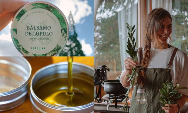 La historia de Lucía Molina está ligada a la cerveza. Si bien es cordobesa, su profesión de hotelería y turismo la llevó a Bariloche a trabajar al hotel Llao Llao. Luego trabajó en Cervecería Patagonia, del grupo AB InBev, donde conoció su pasión: el lúpulo. A partir de allí, decidió trabajar con la flor como ingrediente y comenzó a fabricar productos de cosmética.