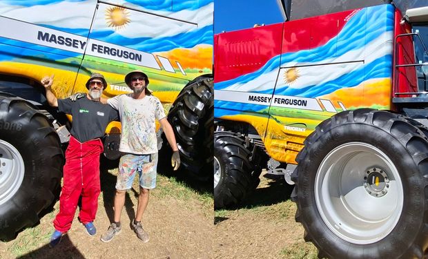 Los hermanos Calabia pintaron una cosechadora Massey Ferguson en Expoagro 2026